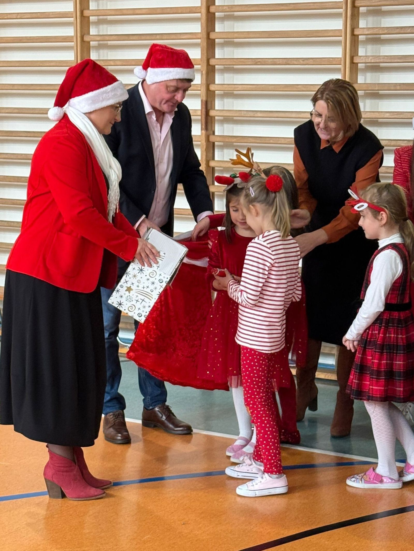 Wójt i Przewodnicząca Rady jako pomocnicy św. Mikołaja. Radość w szkołach i „Żółwiku”