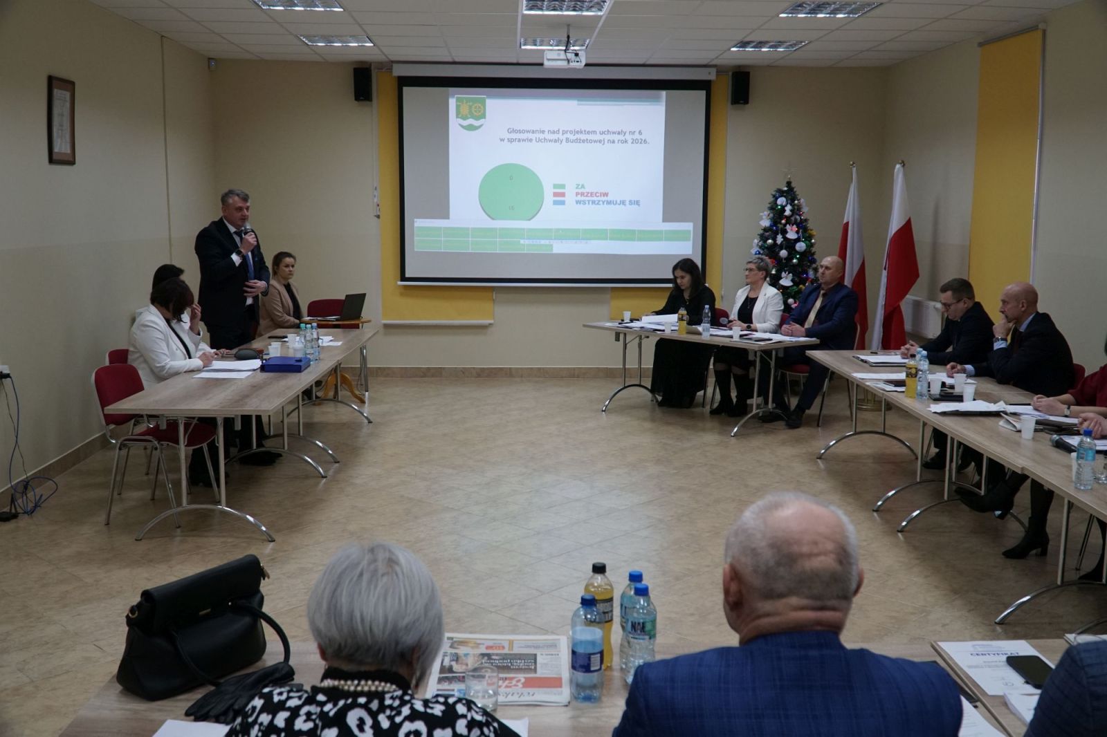 Sesję rozpoczęło sprawozdanie wójta gminy Przyłęk Jerzego Kamionki, który przedstawił działania podejmowane od poprzedniego posiedzenia rady oraz bieżące sprawy dotyczące pracy samorządu. Następnie radnym zaprezentowano projekt uchwały budżetowej. Dokument został wcześniej szczegółowo omówiony na posiedzeniach komisji gminnych i uzyskał pozytywną opinię Regionalnej Izby Obrachunkowej. W głosowaniu udział wzięło piętnastu radnych i wszyscy opowiedzieli się za przyjęciem budżetu. – Dziękuję radnym za jednomyślność i odpowiedzialne podejście do spraw gminy. Budżet na 2026 rok jest realistyczny i bezpieczny, a jednocześnie pozwala realizować konkretne zadania inwestycyjne, które są ważne dla mieszkańców poszczególnych miejscowości. To plan oparty na potrzebach i możliwościach finansowych gminy, z myślą o jej dalszym, spokojnym rozwoju – podkreśla wójt gminy Przyłęk Jerzy Kamionka.