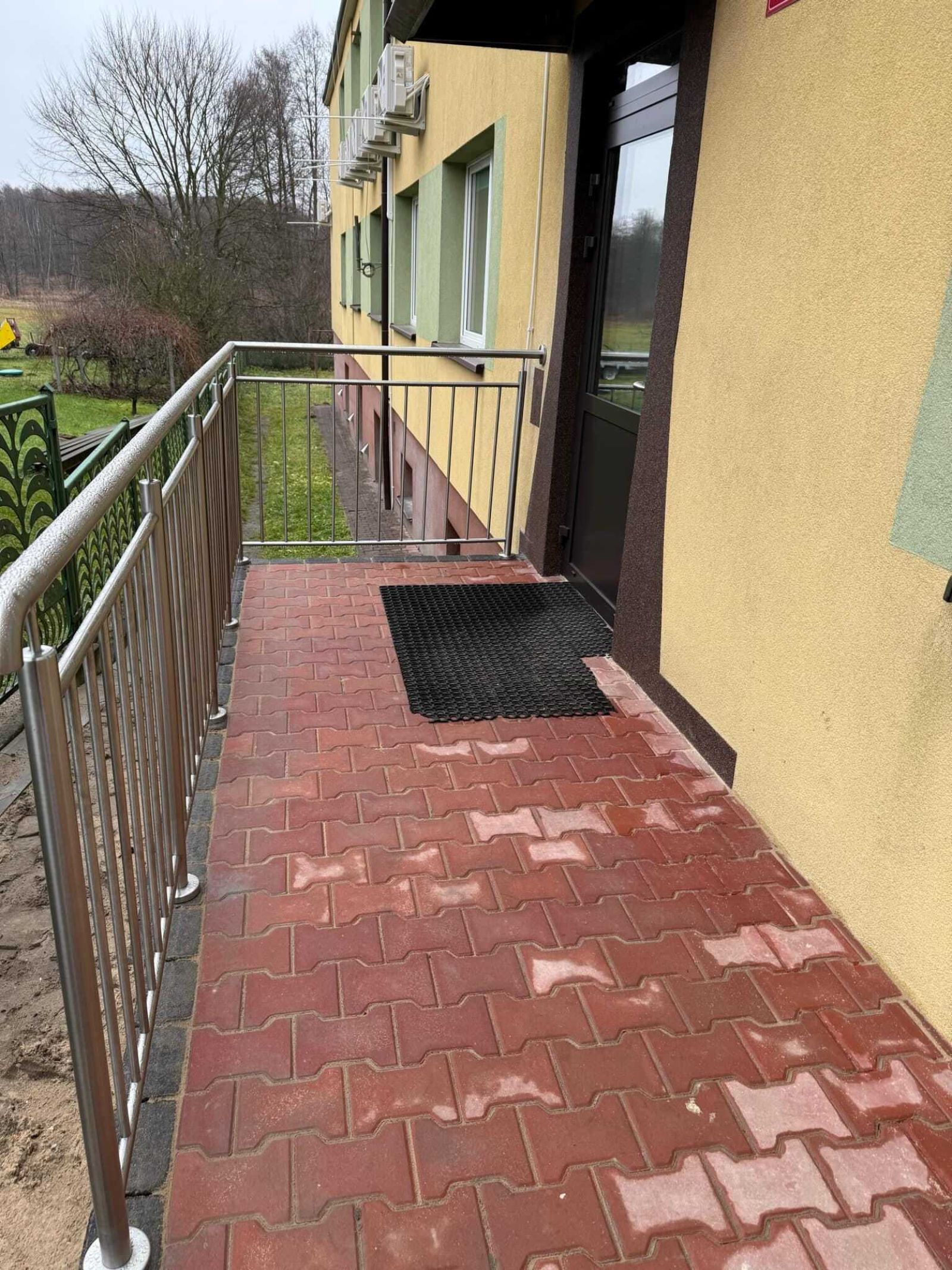 W ramach inwestycji zlikwidowano schody i wykonano wejście pozbawione barier architektonicznych, umożliwiające swobodny wjazd osobom poruszającym się na wózkach. Wymieniono drzwi wejściowe na nowe, bardziej trwałe, ułożono chodnik z kostki brukowej oraz przebudowano podest. Zamontowana barierka poprawia bezpieczeństwo użytkowników.
