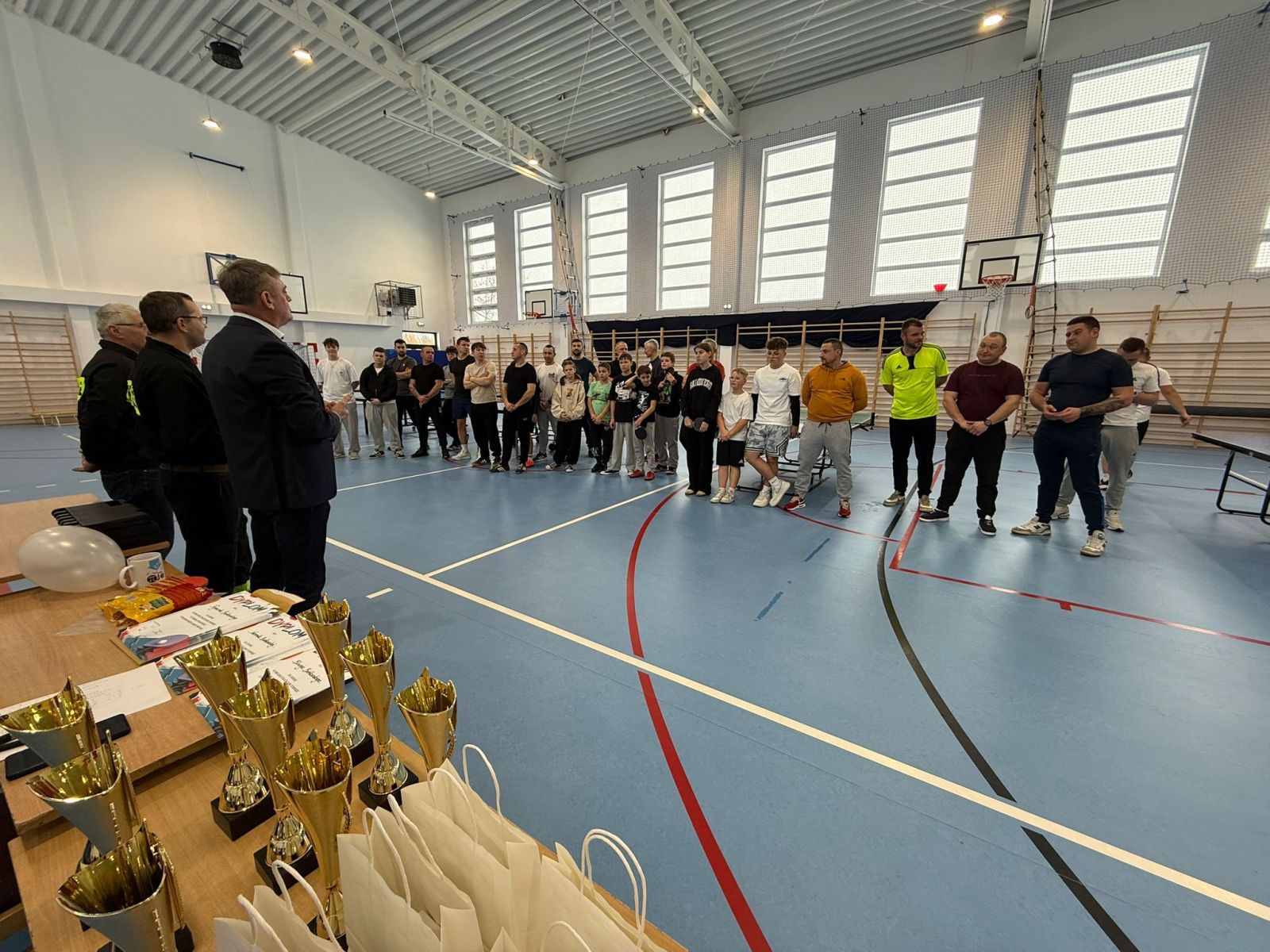 Obecny na turnieju wójt gminy Przyłęk Jerzy Kamionka podziękował wszystkim, którzy przyczynili się do organizacji wydarzenia oraz jego uczestnikom. – Dziękuję wszystkim zawodnikom za udział i stworzenie wspaniałej atmosfery, a kibicom za gorący doping, który dodawał energii przy stołach. Szczególne podziękowania kieruję do dyrektora szkoły Jacka Rogali za udostępnienie obiektu, a także do komendanta gminnego Andrzeja Sadury oraz strażaków, których zaangażowanie było niezbędne, aby ten turniej mógł się odbyć. Dziękuję też każdej osobie, która dołożyła swoją cegiełkę do wydarzenia. Po dzisiejszych meczach widać, że ma ono sens i że warto je kontynuować. Jestem przekonany, że kolejne edycje będą przyciągały jeszcze więcej zawodników i kibiców  – podkreślił wójt Jerzy Kamionka.