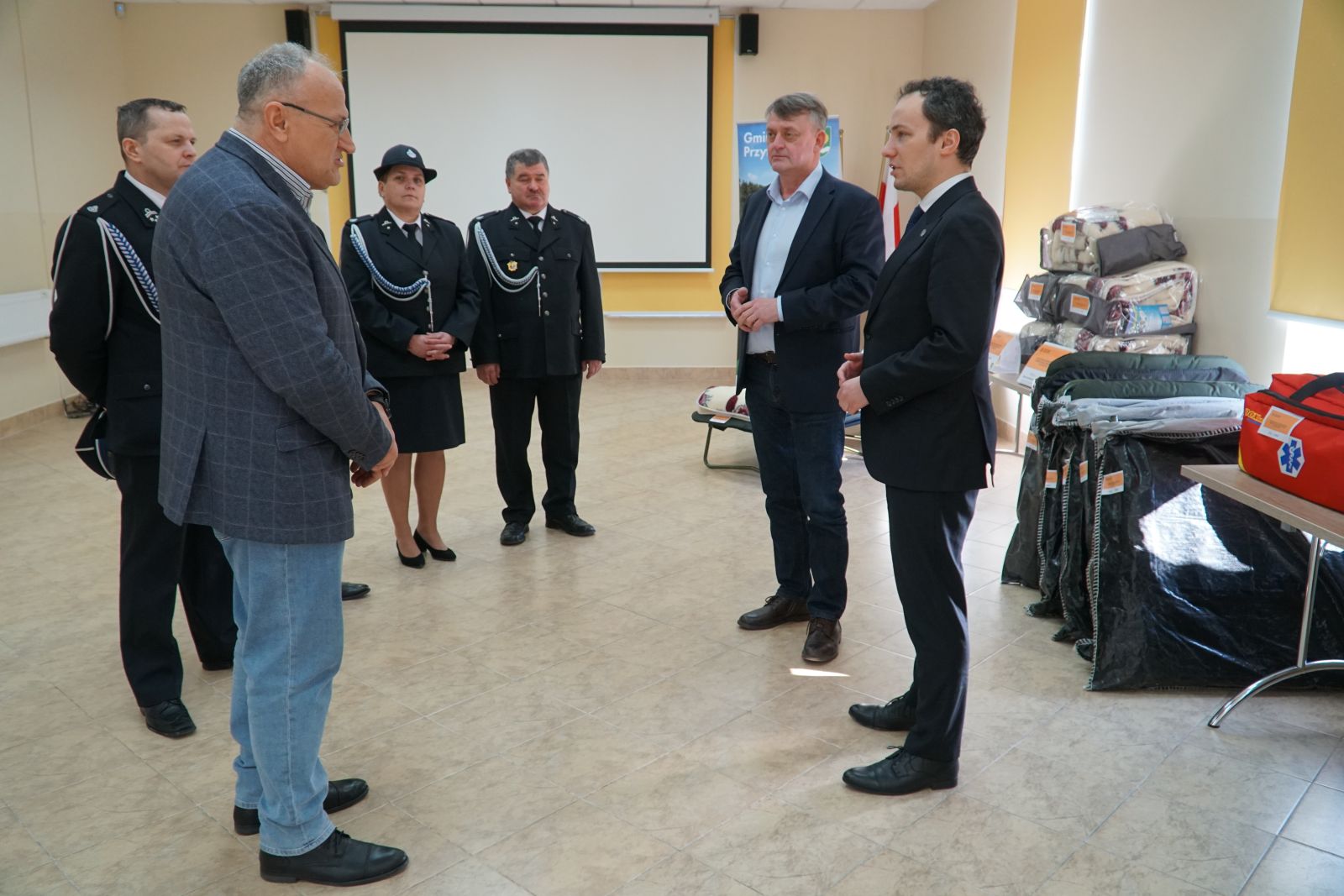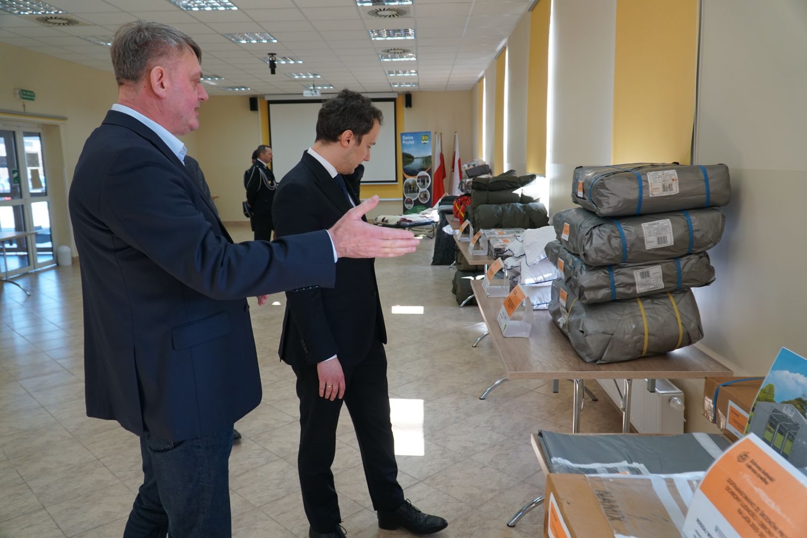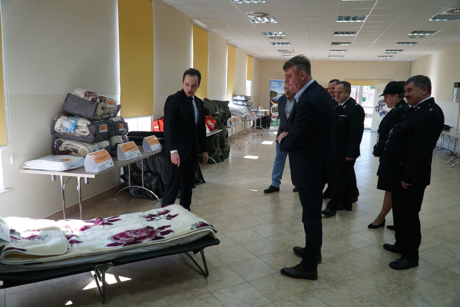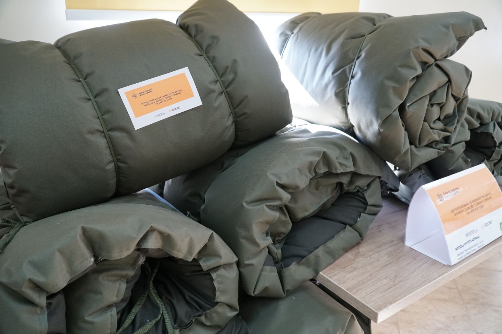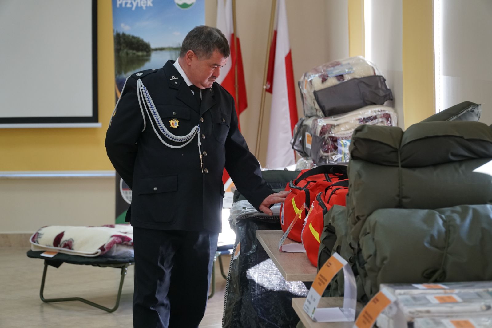 W ramach pierwszego zadania gmina zakupiła szeroki zakres wyposażenia, które umożliwi organizację tymczasowego zaplecza dla osób poszkodowanych lub ewakuowanych. Do gminy trafiło między innymi 21 łóżek polowych typu wojskowego wraz z materacami, 54 koce, 60 kompletów pościeli oraz 60 koców wełnianych, które pozwolą szybko zorganizować miejsca noclegowe w sytuacjach wymagających natychmiastowej pomocy.