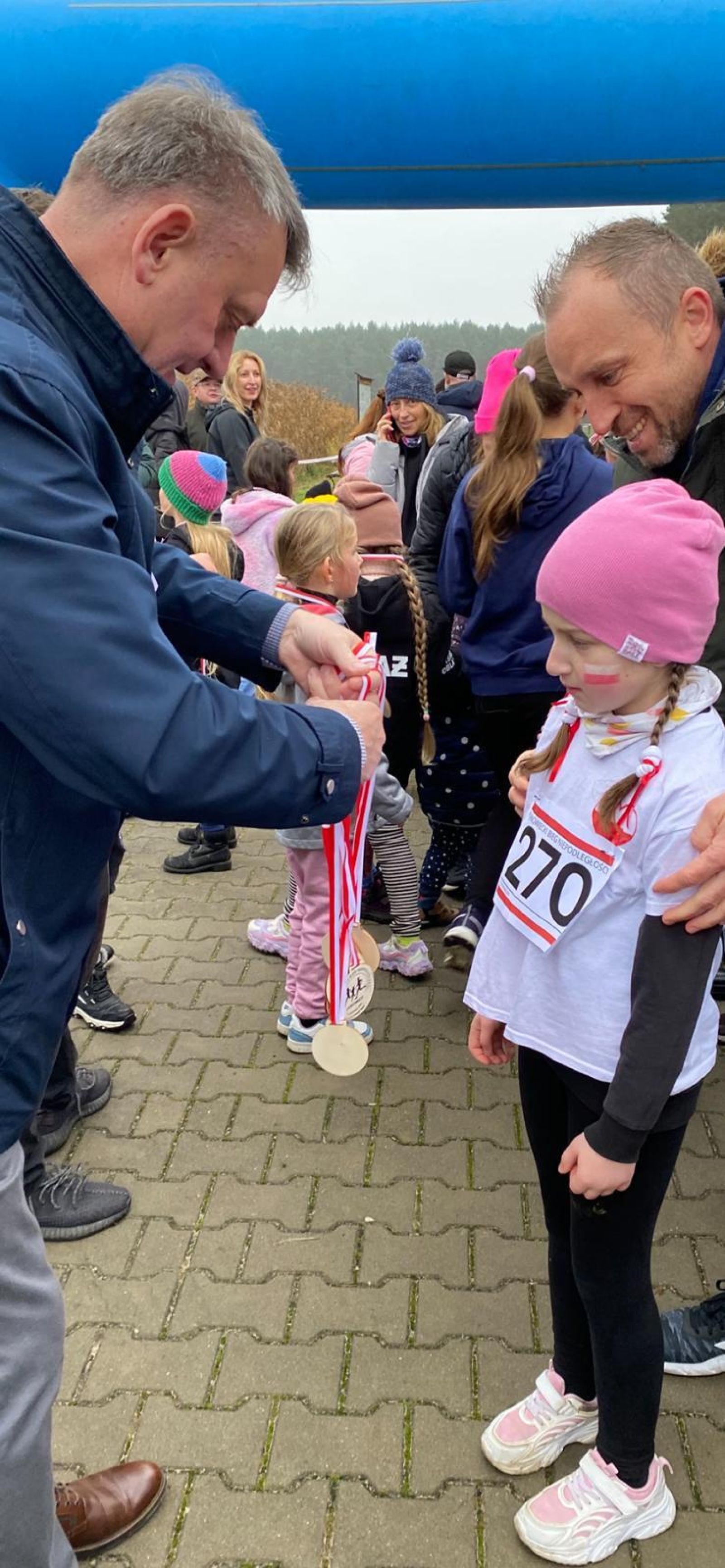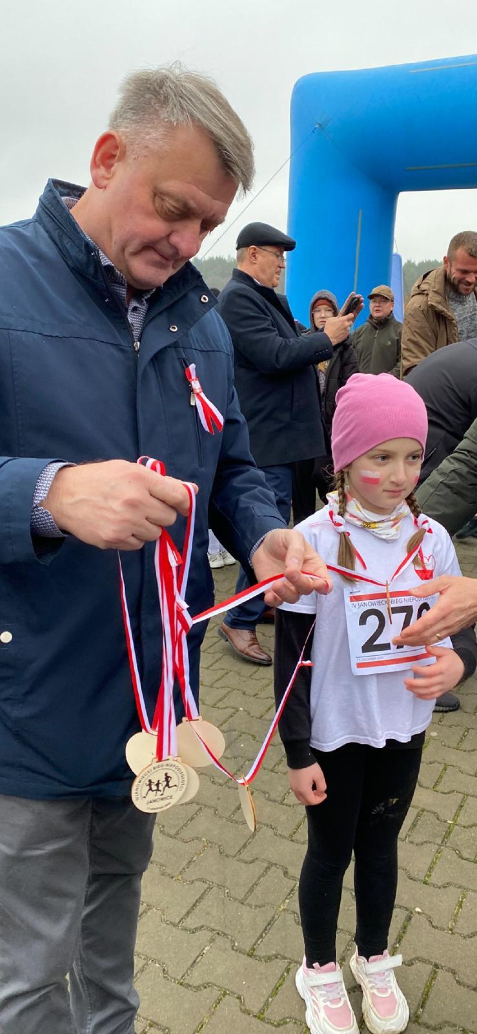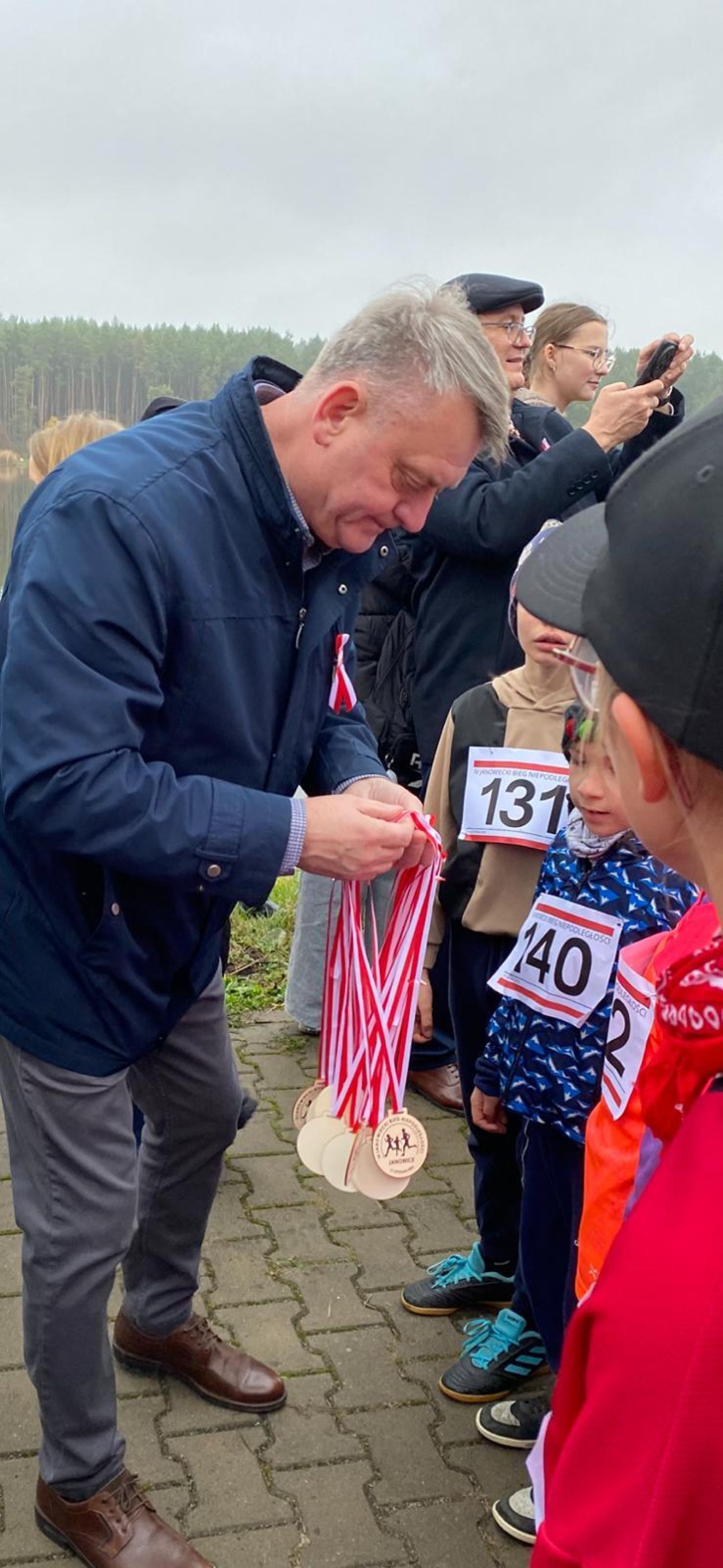 Wójt gminy Przyłęk Jerzy Kamionka oraz sekretarz gminy Marzena Rogala wręczali uczestnikom pamiątkowe medale. Ceremonia dekoracji stała się jednym z najbardziej wzruszających momentów całego wydarzenia. Uśmiechy, gratulacje i przyjazne gesty podkreślały, jak ważne jest wspólne świętowanie w duchu jedności i aktywności. – Cieszę się, że tak wielu mieszkańców naszej gminy zdecydowało się spędzić Narodowe Święto Niepodległości właśnie w ten sposób. Sport ma niezwykłą moc budowania więzi, a dzisiejszy bieg połączył nas wszystkich, od najmłodszych po dorosłych, we wspólnej radości z odzyskanej wolności. Dziękuję organizatorom, wolontariuszom i uczestnikom za zaangażowanie. Razem pokazaliśmy, że patriotyzm może mieć także sportową formę i że warto świętować aktywnie – powiedział wójt Jerzy Kamionka.