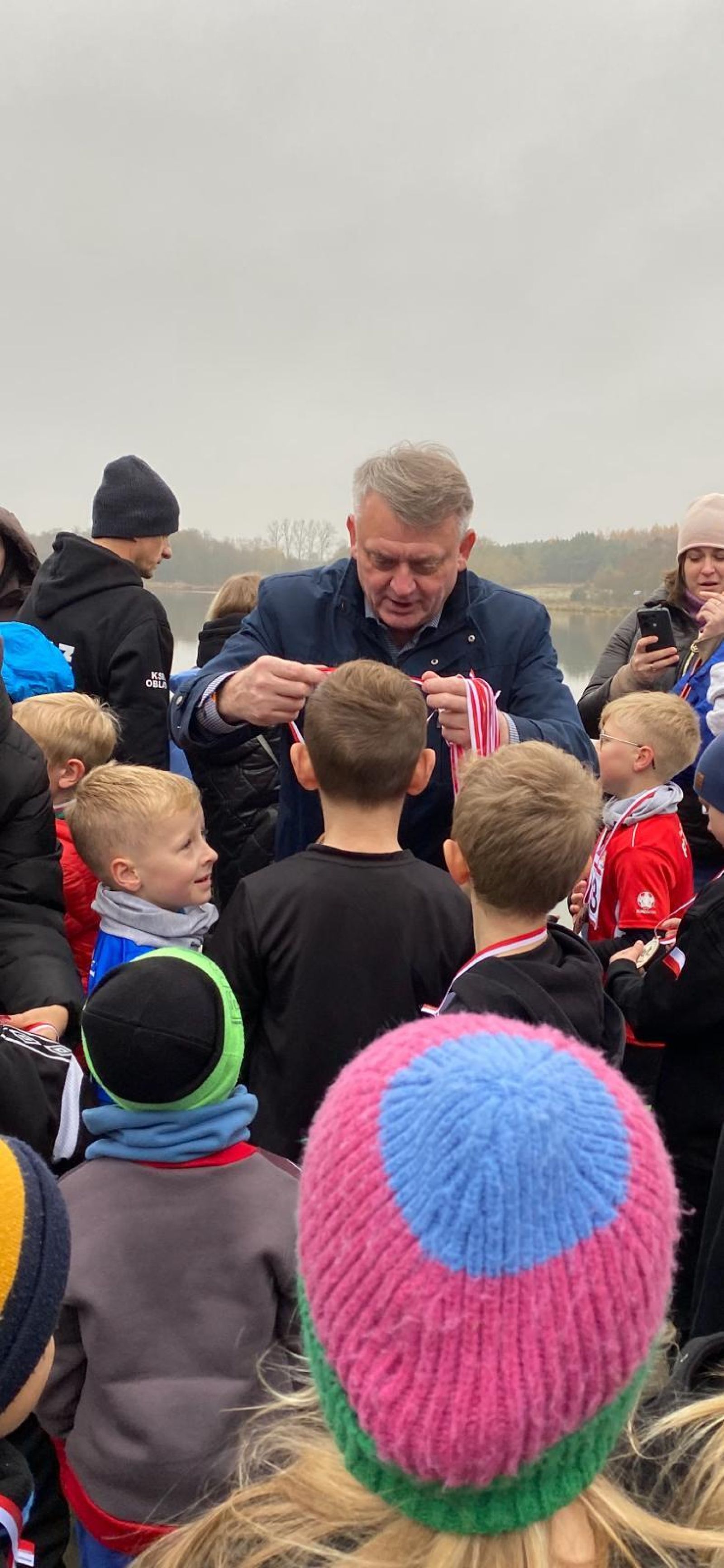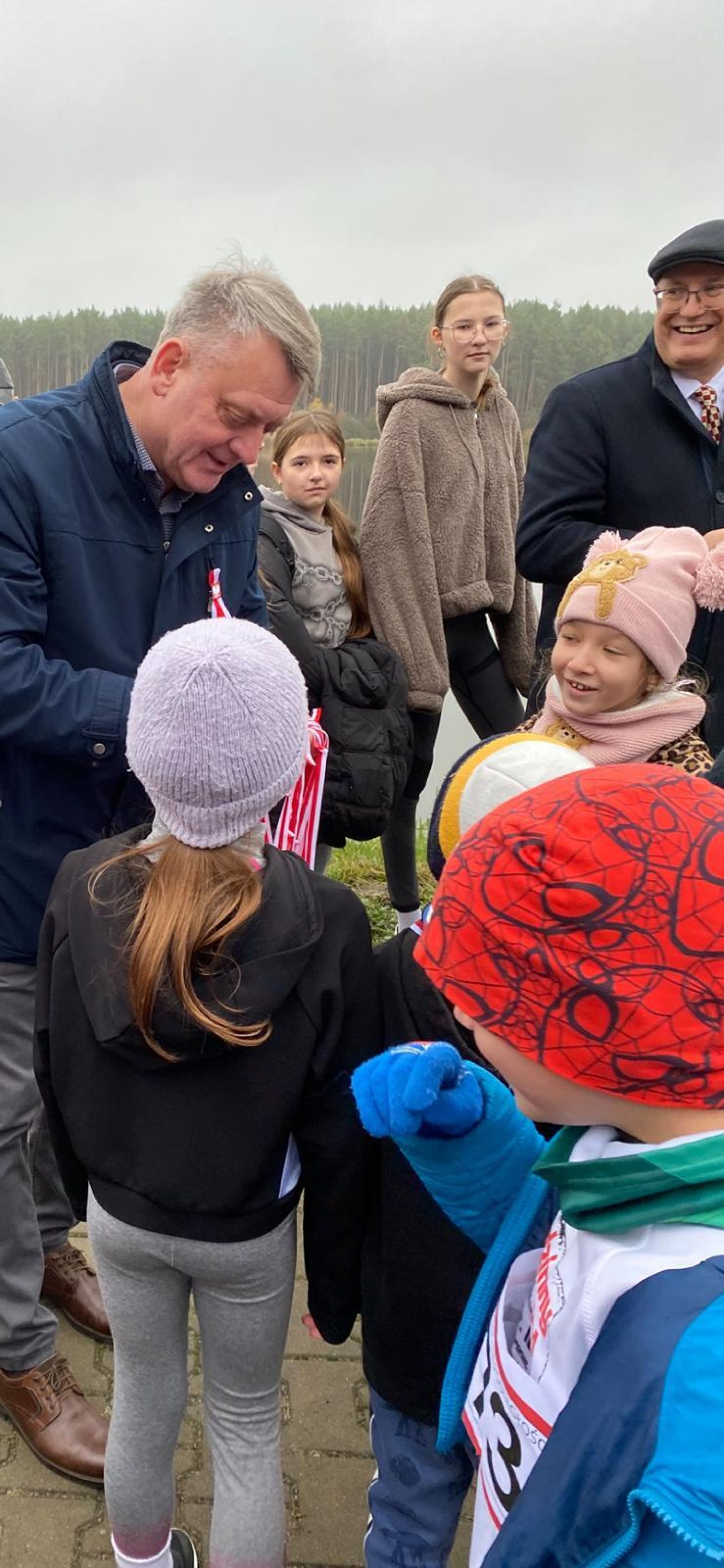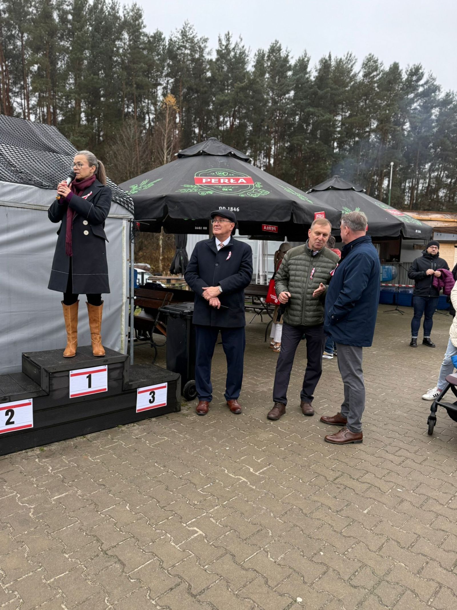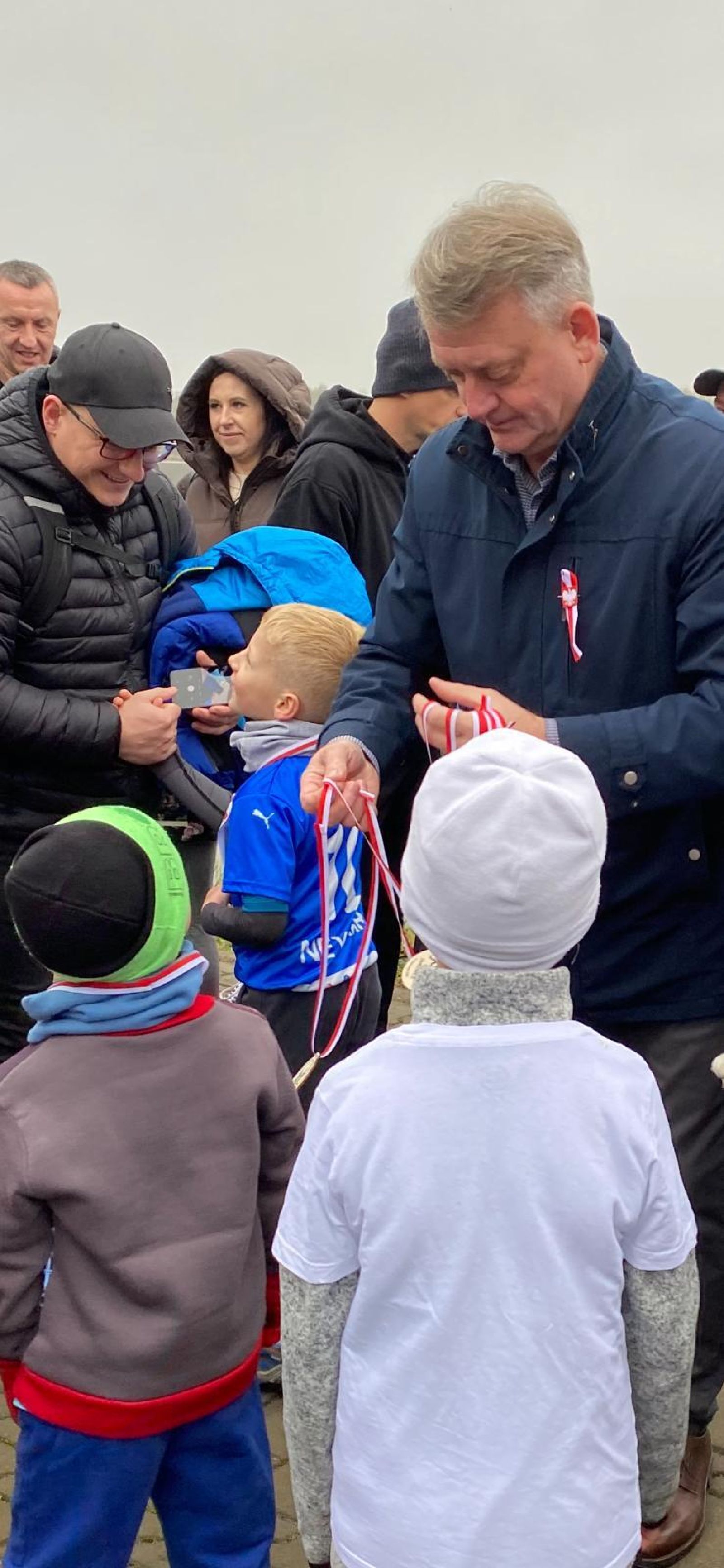 Wójt gminy Przyłęk Jerzy Kamionka oraz sekretarz gminy Marzena Rogala wręczali uczestnikom pamiątkowe medale. Ceremonia dekoracji stała się jednym z najbardziej wzruszających momentów całego wydarzenia. Uśmiechy, gratulacje i przyjazne gesty podkreślały, jak ważne jest wspólne świętowanie w duchu jedności i aktywności. – Cieszę się, że tak wielu mieszkańców naszej gminy zdecydowało się spędzić Narodowe Święto Niepodległości właśnie w ten sposób. Sport ma niezwykłą moc budowania więzi, a dzisiejszy bieg połączył nas wszystkich, od najmłodszych po dorosłych, we wspólnej radości z odzyskanej wolności. Dziękuję organizatorom, wolontariuszom i uczestnikom za zaangażowanie. Razem pokazaliśmy, że patriotyzm może mieć także sportową formę i że warto świętować aktywnie – powiedział wójt Jerzy Kamionka.
